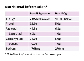 Tofu hi-protein firm (Soy), Zucchini, Carrot, Bang bang sauce [Peanut butter smooth, Tamari (Soy), Sesame oil], Green beans, Corn kernels small, Tofu coating [Cornstarch (GF), Salt iodised, Vegetable stock powder, Ground black pepper, Chinese five spice], Water, Lemon juice, Vegetable oil, Roasted peanuts unsalted, Ginger, Garlic