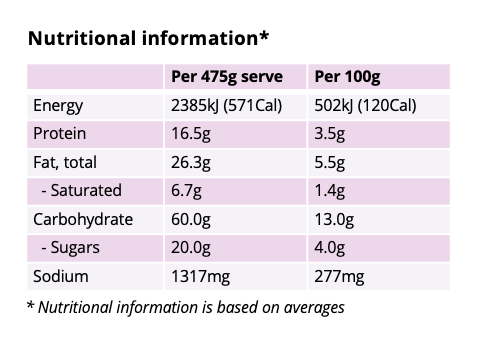 Water, Green beans, Basmati rice, Onion, Canned chickpeas, Mango chutney, Frozen peas (pantry item), Roasted cashews unsalted, Vegetable oil (pantry item), Poriyal spice mix [Chana dal, Black mustard seeds, Chilli red dried whole, Curry leaf dried], Shredded coconut (Sulphites), Vegetable stock cube, Coriander, Salt (pantry item), Asafoetida, Turmeric.